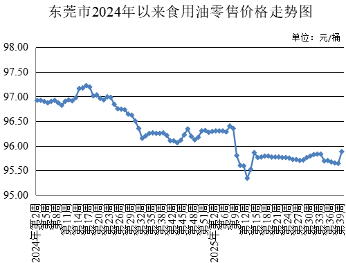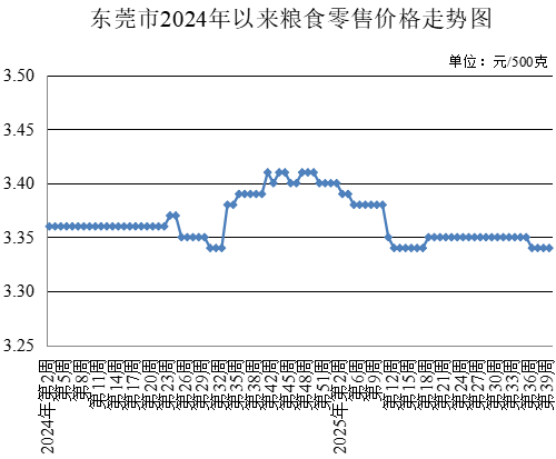 第39周,监测的4种粮食农贸市场零售均价为每500克3.34元,与上周持平。其中,3种大米农贸市场零售均价为每500克3.28元,与上周持平;面粉农贸市场零售均价为每500克3.51元,较上周下降0.28%。5L桶装食用油农贸市场零售均价为每桶95.88元,较上周上升0.25%。