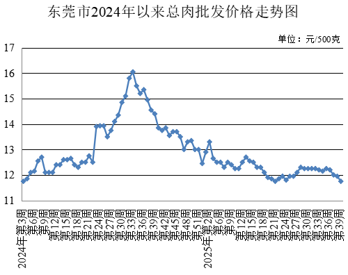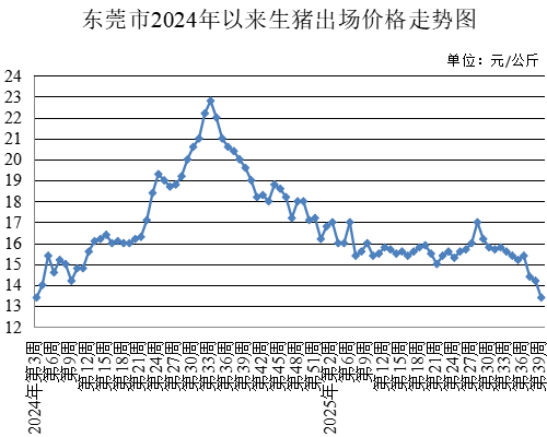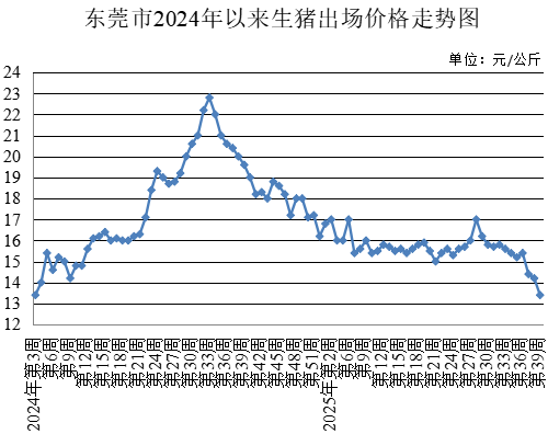 第39周,生猪出场价格为每公斤13.40元,较上周下降5.63%。总肉批发均价为每500克11.75元,较上周下降1.67%。
