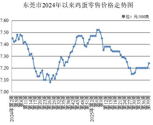 第39周,监测的鸡蛋农贸市场零售均价为每500克7.24元,较上周上升0.56%。